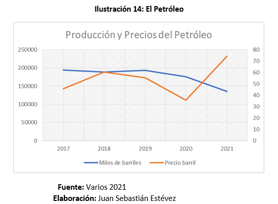 Se cerraría el año con crecimiento en la producción petrolera y el incremento de los precios internacionales. Los precios crecen más que la producción como se refleja en la ilustración 14.