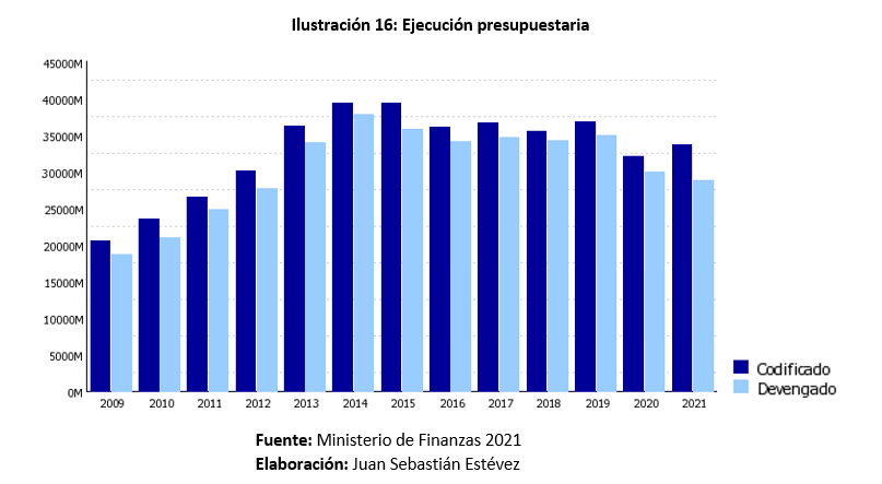 Al analizar el Presupuesto General del Estado, se constata que los ingresos se incrementan con el rubro de Ingresos petroleros. Los tributos permanecen estables, pero para diciembre seguramente alcanzan la meta propuesta y superior a la recaudación del año 2020. Los gastos se incrementan, pero por el rubro de Activos no financieros (bienes raíces, equipamiento, vehículos), el resto de los rubros disminuyen incluido sueldos y salarios. Al final de 2021, el déficit estará por los 2 mil millones, menor a lo presupuestado. Además, no hay que perderle de vista la inveterada costumbre de no cumplir el presupuesto codificado y entre el presupuesto del sector de la educación. En general el presupuesto esta devengado al 84%.