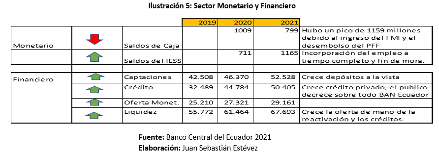 En el sector monetario se reflejan saldos de caja bajos pero positivos y con un alto crecimiento del sector financiero, como se detalla en la ilustración 5.