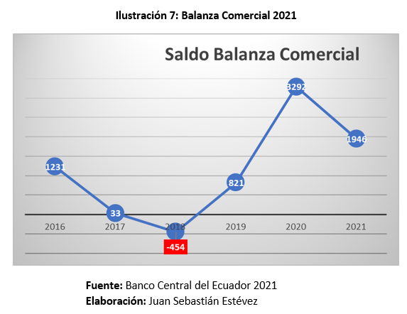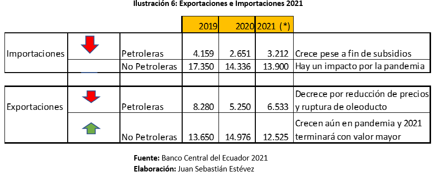 En consecuencia, la balanza comercial presenta un resultado positivo con un crecimiento de las exportaciones, pero también con reducción de importaciones por altos aranceles. Las exportaciones no petroleras tuvieron un leve impacto por la pandemia, pero en términos de que podrían crecer más, el factor de incremento de precios en el exterior jugó a favor de este crecimiento.